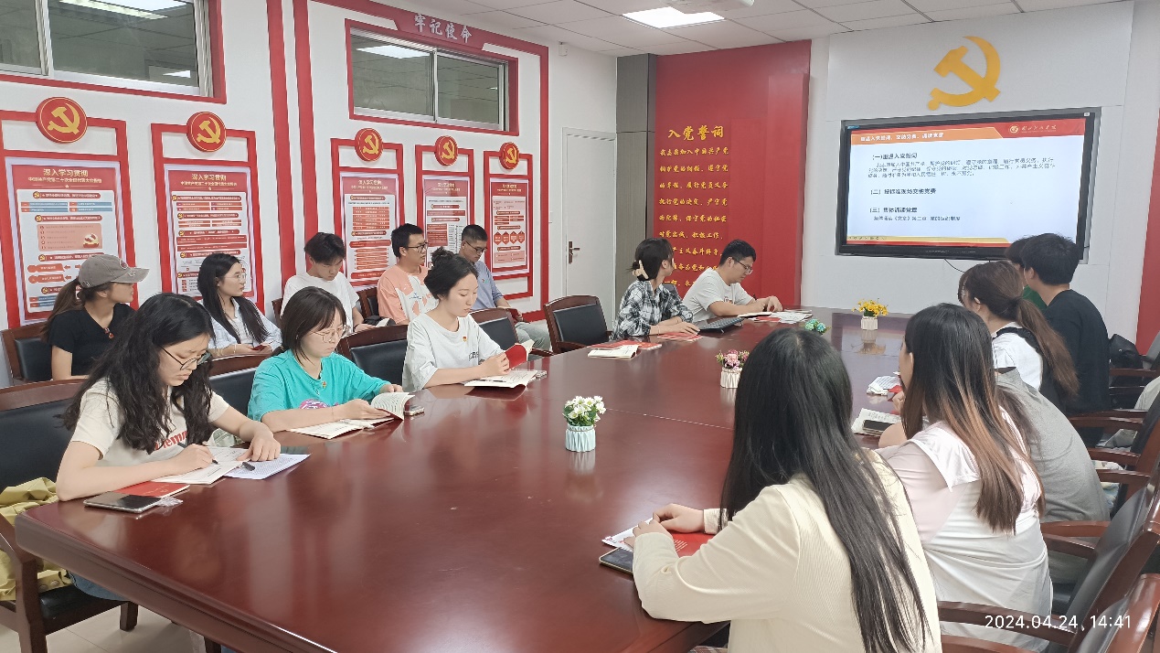 鲁琪给党支部党员讲了主题为“传承红色基因,矢志不渝奋斗”的微党课,结合“二七”精神,教育引导支部党员坚定理想信念,不怕困难,勇于面对挑战,承担起新时代青年党员的重担,为国家发展和社会建设贡献工科智慧。并就近期公司《关于在全校开展党纪学习教育的实施方案》进行了工作安排。
