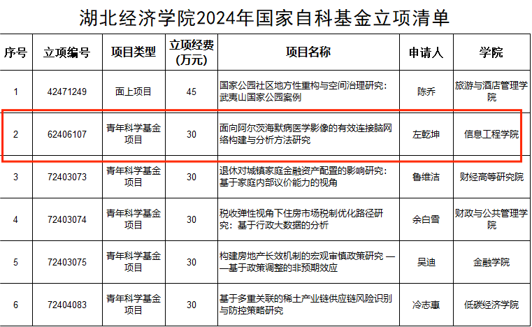本网讯(通讯员:汪琪)近日,国家自然科学基金委员会公布了2024年度国家自然科学基金集中申请项目评审结果,公司青年博士左乾坤老师申请的《面向阿尔茨海默病医学影像的有效连接脑网络构建与分析方法研究》课题获青年科学基金项目立项,资助金额30万元。