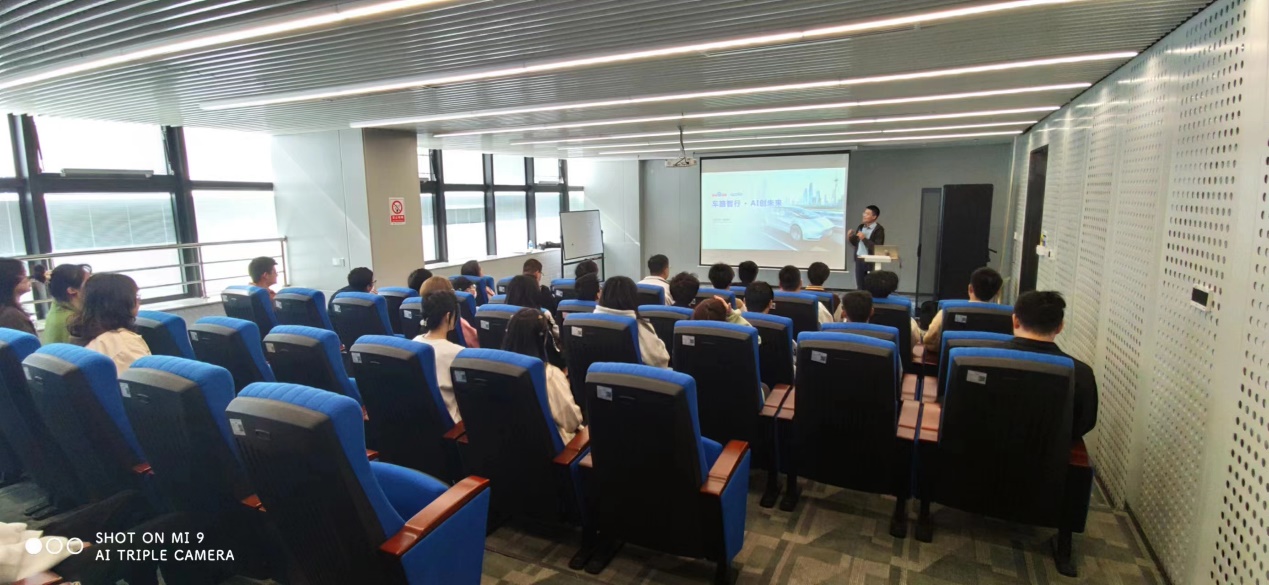 参加活动的师生从公司出发,来到位于武汉市汉阳经开区的“武汉经开人工智能科技园“,聆听了关于百度Apollo自动驾驶技术发展情况和前沿技术的两场报告,并参观了“萝卜快跑”平台的远程云仓,与百度Apollo无人驾驶车进行了零距离亲密接触。通过与相关技术工程师和运营主管的深入交流,师生们对无人驾驶技术、百度Apollo无人驾驶车的发展历程和现状、武汉市目前的无人驾驶网约车的运营情况和未来规划等有了全面深入的了解。