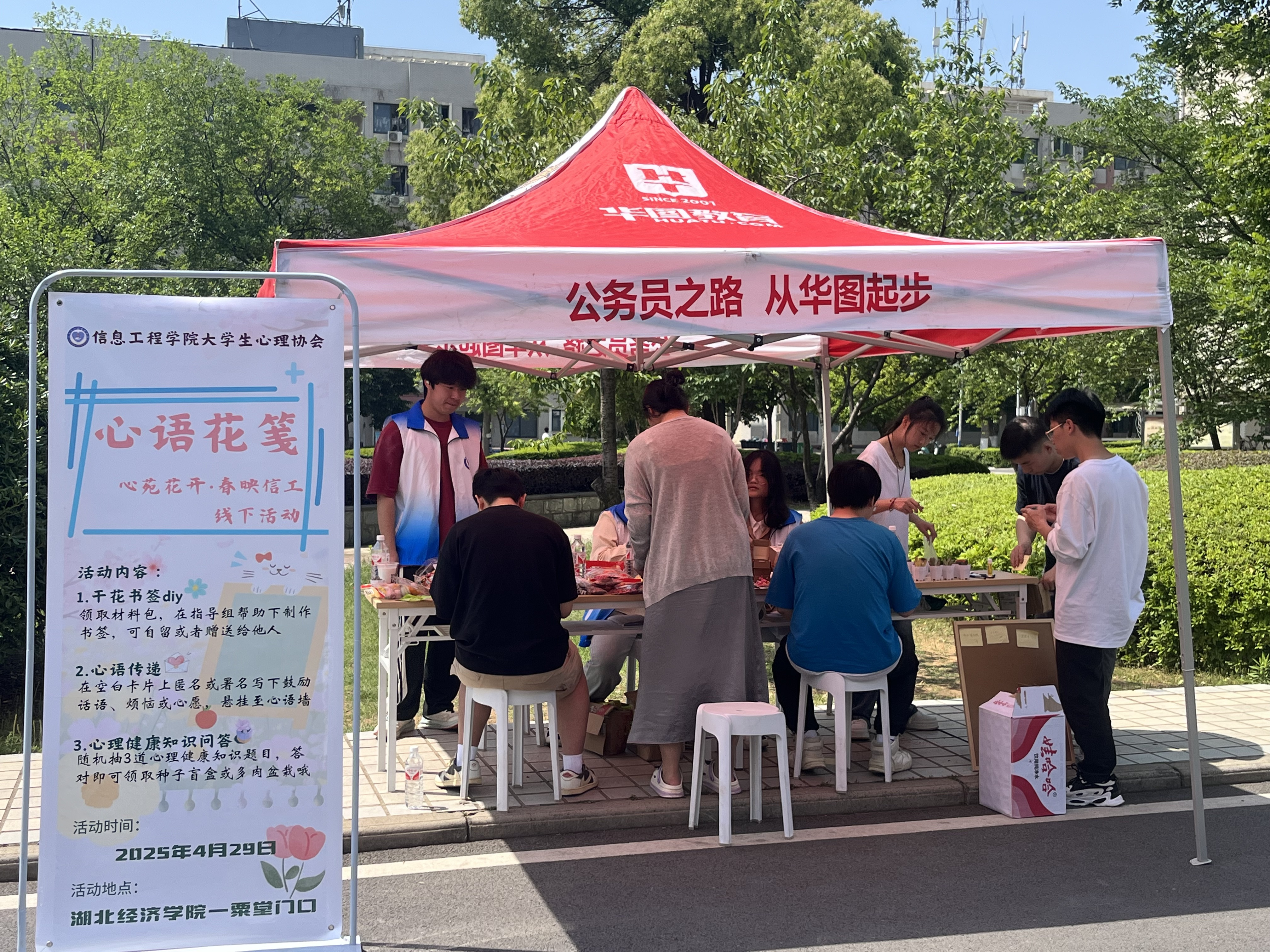 活动伊始,干花书签DIY环节便吸引了大家的目光,每一片花瓣都承载着制作者的小心思,每一件作品都充满了仪式感。心语传递环节更是将活动推向了高潮,同学们在空白卡片上写下互相鼓励的话语、小烦恼、美好心愿,挂在心语墙上,这些卡片如同一座座桥梁,连接着彼此的心灵。心理健康知识问答环节则考验了大家的脑力,题目设计巧妙,既有趣味性又有专业性,同学们积极参与,争相答题,现场充满了欢声笑语。