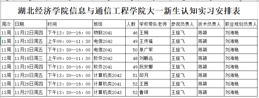 四、实习时间表