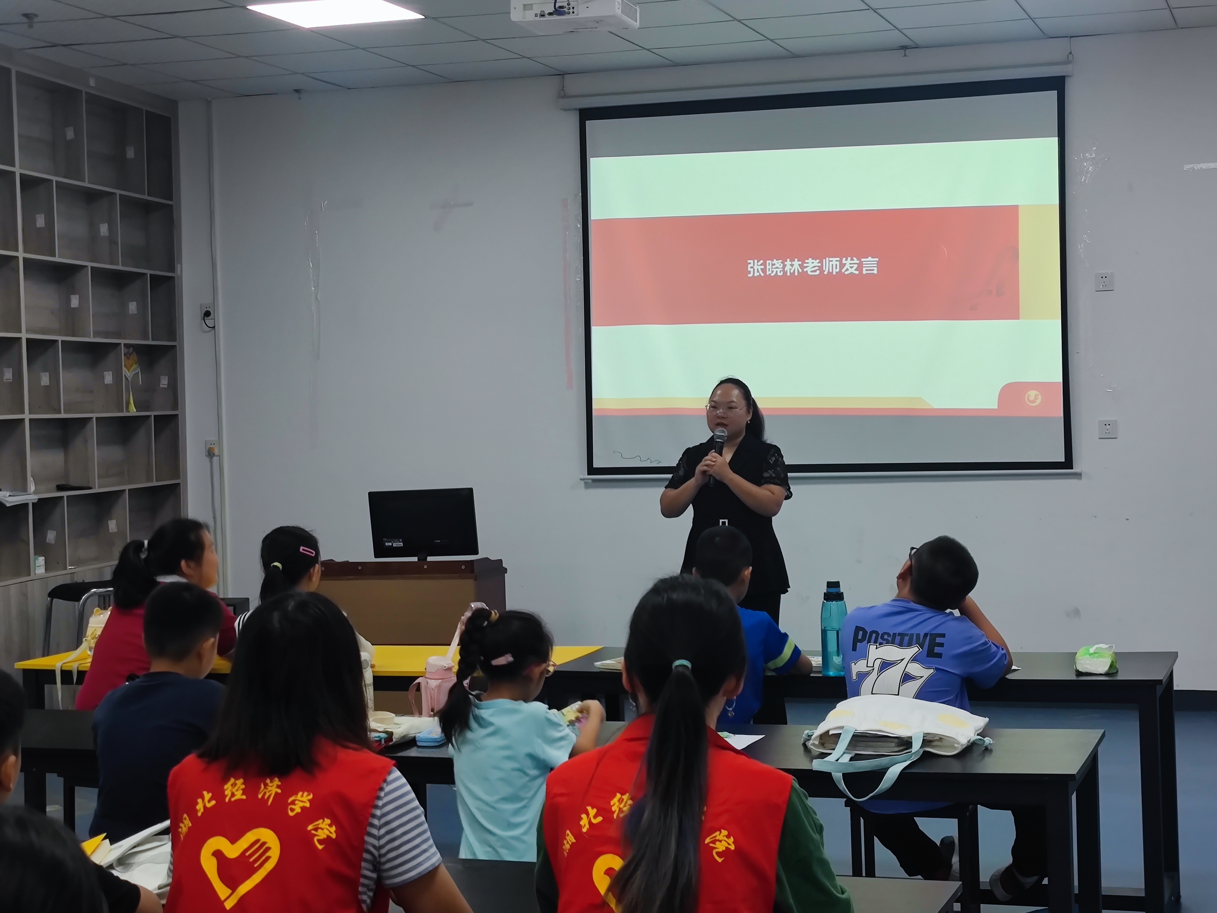 在开班仪式中,张晓林老师肯定了信工青协前期在社区开展的爱心陪伴和少儿编程课等特色活动,着重强调安全的重要性,并明确纪律和卫生要求,鼓励小朋友们之间能互帮互助。胡陈老师则是希望小朋友们能够在暑期托管班中锻炼自我展示和表达的能力,希望小朋友们愉快地度过假期,养成良好的学习和生活习惯。为了尽快的让大家相互熟悉,支教队员和小朋友们纷纷上台介绍自己,并借助小游戏加深了解,为后续支教活动的开展打下良好基础。