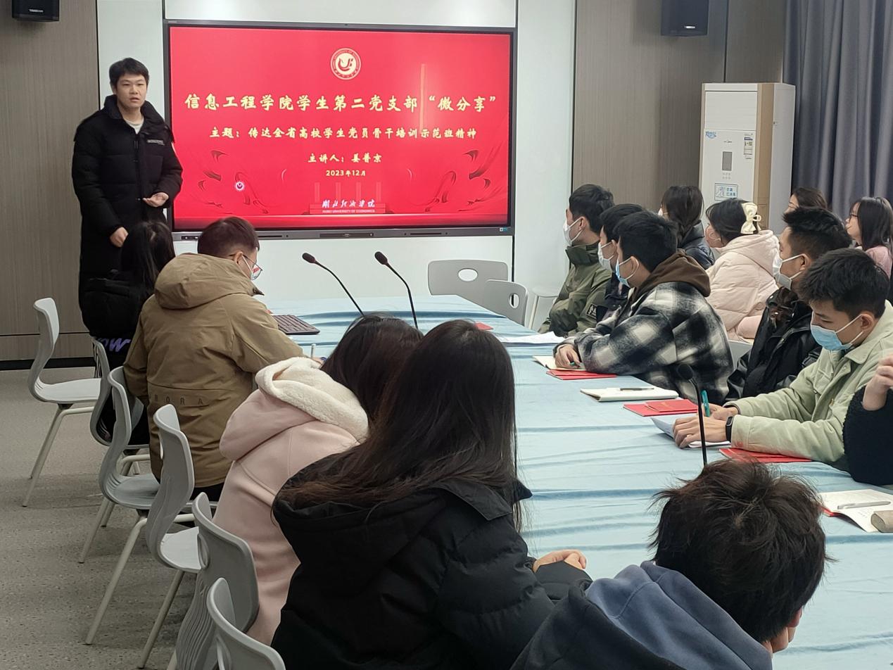 本网讯(通讯员:鲁琪 姜普京)2023年12月8日至10日,党支部党员姜普京作为代表参加“全省高校员工党员骨干培训示范班”。为进一步将培训成果转化为推动党支部建设的内生动力,12月26日,党支部在知行楼328开展以“传达全省高校员工党员骨干培训示范班精神”为主题的微分享,由姜普京主讲。